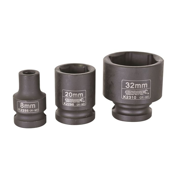 • Kincrome Impact Sockets & Accessories are manufactured from Chrome Molybdenum Steel (Cr-Mo), hardened and tempered to perform in extreme conditions
