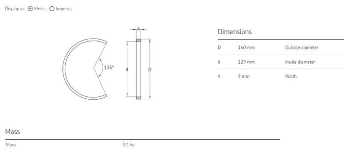 | Inside diameter | 129 mm |