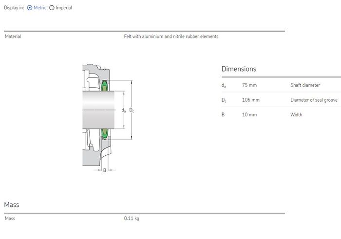 - SKF - Felt Seal (2 sides) 75 mm shaft
