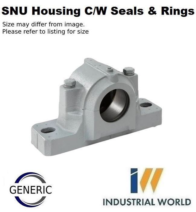 Snu plummer block housings are split housings consisting of a cap and base. They have two holes cast into the base for attachment bolts. The housings are designed to enable a wider choice of shaft-bearing combinations.
