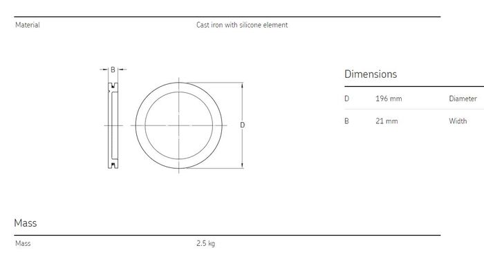 | Material | Cast iron with silicone element |