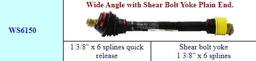 Wide Angle PTO Shaft with shear bolt yoke on Plain End.