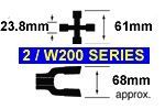 - 23.8mm x 61mm x 68mm (approx.) 2/W200 Series Shaft.