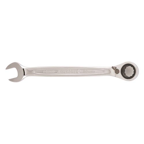 The Kincrome Gear Spanner has all the benefits of standard spanners and more. The strong fine gear ratcheting ring end needs as little as 5° of sweep to move fastener, a standard fixed ring end needs a minimum of 30°, or 6 times the area. Kincrome Gear Spanner ratcheting ring end has a Peripheral Drive™ configuration that virtually eliminates the rounding off of fasteners. The narrow and thin head, combined with fine gear tooth design makes the Kincrome Gear Spanner suitable for working in tight and hard to access areas where a ratchet and socket will not fit. Combined with the 'Fine Tooth' technology Kincrome Gear Spanners are the 'state of the art' in spanners, and come with a handy plastic storage case.