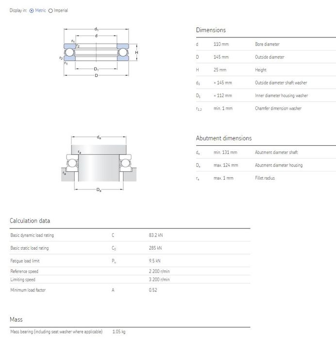 | Basic dynamic load rating | 83.2 kN |
