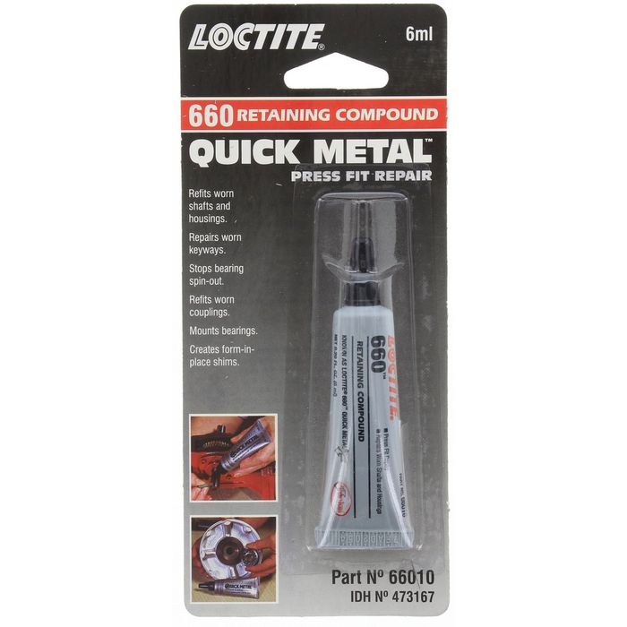 LOCTITE 660 is a high strength retaining compound with good gap filling properties, ideal for repairing worn-out seats, keys, splines, bearings or tapers without remachining.