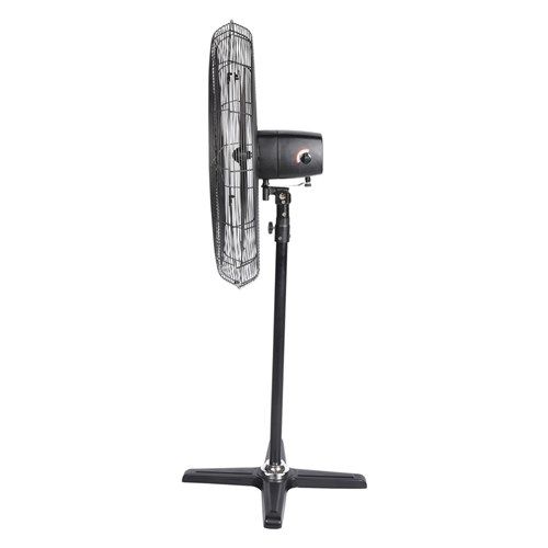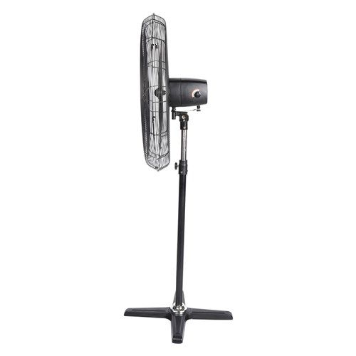 The construction of the fan delivers long term reliability to the user with components such as- heavy duty grills, aluminum blade, heavy duty base, adjustable height telescopic pedestal, energy efficient motor, 3 speed switch, oscillation and tilt functions.
