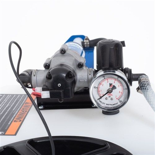 • 3.8LPM 12V 100% Duty Cycle Pump with adjustable pressure regulator and gauge, fused leads & remote switch