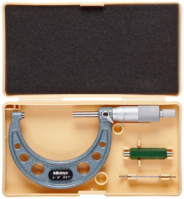 The Mitutoyo outside micrometer features either a ratchet stop or friction thimble that applies constant measuring force on a workpiece for exact repetitive readings. Available in metric and inches.