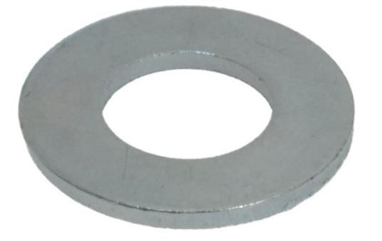 Flat Washers are used to increase the bearing surface of a nut or fastener's head thus spreading the clamping force over a larger area. They can be useful when working with soft materials and oversized or irregular shaped holes. The washer also ensures a smooth base for the nut to press against.