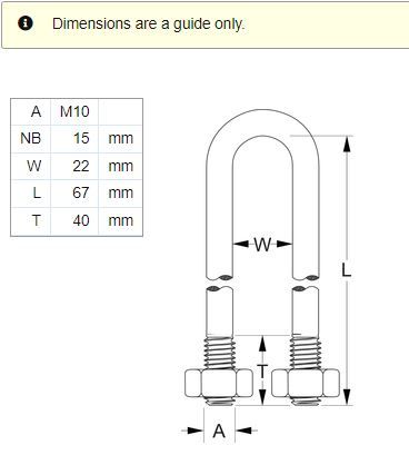 M10 X 15 NB 316 U-BOLT KIT