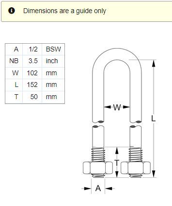 HDG U-BLT KIT:1/2BSW X 3-1/2NB