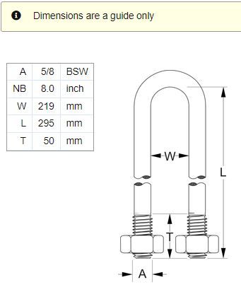 HDG U-BLT KIT: 5/8BSW X 8 NB