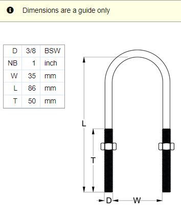 ZP U-BLT KIT: 3/8BSW X 1 NB