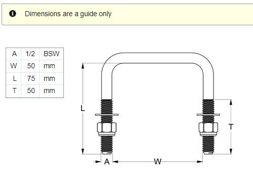 HDG SQ U-BLT KIT:1/2BSWX50X75