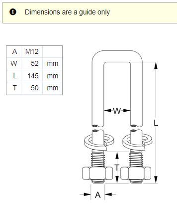 HDG SQ U-BLT KIT:M12X52X145