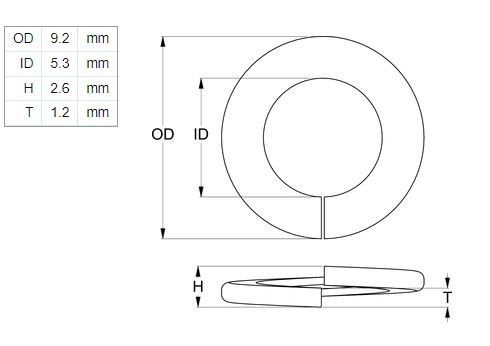 M05 Spring Washer Flat Section Zinc Plated