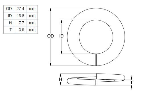 - M16 Spring Washer Flat Section Zinc Plated
