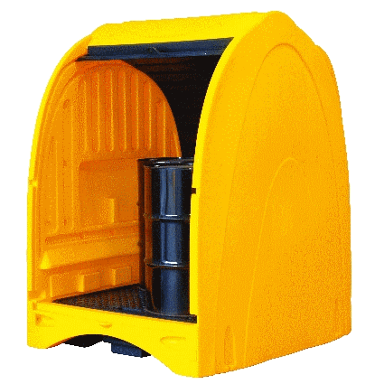 Hard Cover Units provide outdoor weather resistant storage for IBC tanks. The upper roll-top door and lower swing out doors combine to allow easy and convenient access to IBCs and the low profile design provides safe material handling and dispensing. Hard Top models are lockable, allowing safe material storing. Available to be moved with a forklift, this 100% polyethylene design will not rust or corrode, providing years of service under rigorous conditions. The Hard cover Drum Bund comes in 2 sizes: 2 x 205L Drums or 4 x 205L Drums. Bunded and weatherproof with roll top design, this allows maximum use of floor space. Top or front loadable units are lockable with optional poly ramp.