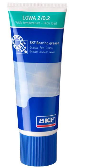 SKF LGWA 2 is a premium quality mineral oil based, lithium complex grease with extreme pressure (EP) performance. LGWA 2 is recommended for industrial and automotive applications when loads or temperatures exceed the range of general purpose greases.Typical applications:• Wheel bearings in cars, trailers and trucks• Washing machines• Fan and electric motors