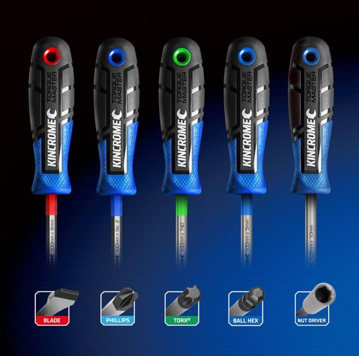 TorqueMaster® incorporates professional grade features such as colour coding and drive indicators that are visible from all angles and make it incredibly easy to find the screwdriver that you need, whether it's in your tool box or tool belt.