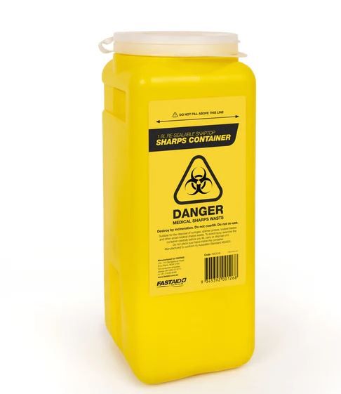 Plastic Sharps Container 1.8L Yellow
