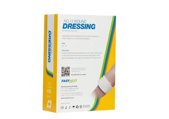 Lightweight cotton absorbent pad with gauze bandage for crater wounds or to contol heavy bleeding.