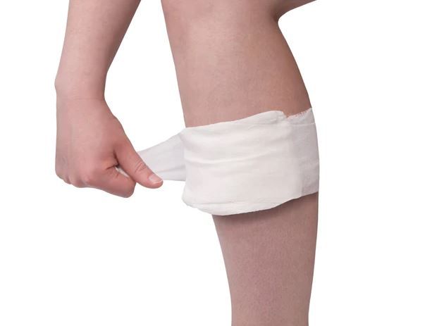 Lightweight cotton absorbent pad with gauze bandage for crater wounds or to contol heavy bleeding.