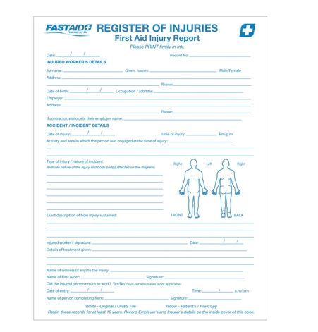 Register of Injuries Book, Carbonless Duplicate Copies.