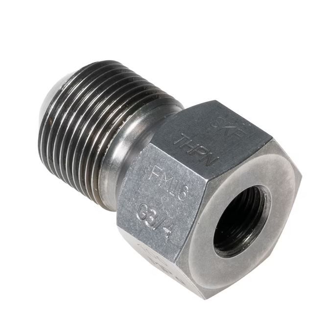The SKF THPN FM16G3/4 spare part is a nipple with G3/4 male, M16x1.5 cone female and 400 MPa, suitable for THAP 300E/K10 and THAP 400E/K10 air driven pump sets, as well as the THAP 300-HK1 and THAP 400-HK1 hose conversion kits.