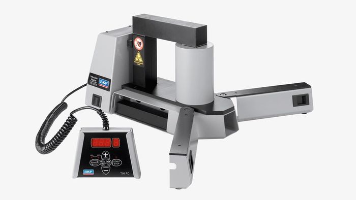 The SKF TIH 030M is a small induction heater and is designed for the hot mounting of bearings. This compact heater is ideal for use on workbenches, yet it can be easily carried for on-site applications. Supplied with three yokes and foldable support arms, the heater is capable of heating bearings with a bore diameters of 20 mm or more and with a maximum weight of 40 kg.