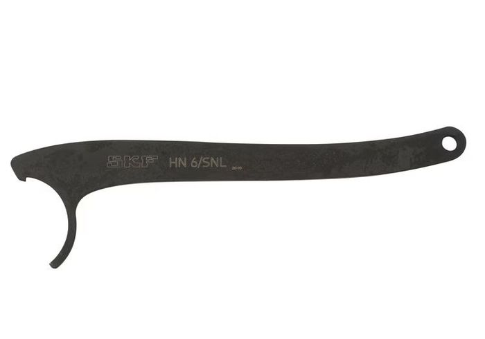 The unique protected design of this SKF Hook spanner, allows it to tighten and loosen lock nuts whilst these are inside SKF split pillow block housings (SNL). Alternatively it can be used as regular hook spanner. They are used to secure and adjust bearings on tapered journals, adapter sleeves and withdrawal sleeves. The SKF hook spanner HN 6/SNL, is designed for nuts with an outer diameter of 45 mm. In particular for lock nuts of series KM 6, KMK 6, KMFE 6, KMT 5, N 06 and (DIN 1804).