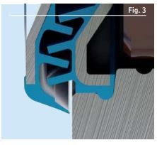 The bearing inner ring is extended on the outboard/locking side. It is locked on the shaft with two stainless steel grub screws that are positioned at 120°, minimising inner ring distortion while maintaining good gripping strength. The inner ring of the bearing is dimensioned to accommodate the fitting of the back seal, allowing the units to be deployed in applications with the highest hygienic design and food safety requirements (e.g. open food processing zones). The sealing system consists of a non-contacting seal and a flinger, located at the outer circumference (fig 1). The flinger provides the first barrier against the ingress of both solid and liquid contaminants. This closes against the bearing outer ring when pressure washed.