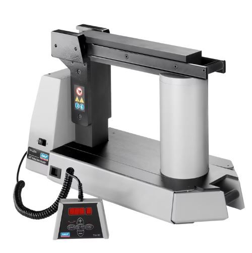 The SKF TIH 220M is a large induction heater and is designed for the hot mounting of bearings. This versatile heater is ideal for use on workbenches and can easily be transported to on-site applications with the optional heater trolley TIH T1. The heater has a convenient sliding yoke and is supplied with an additional smaller yoke. The TIH 220M can heat bearings with a minimum bore diameter of 60 mm and larger bearings with a maximum weight of 300 kg.