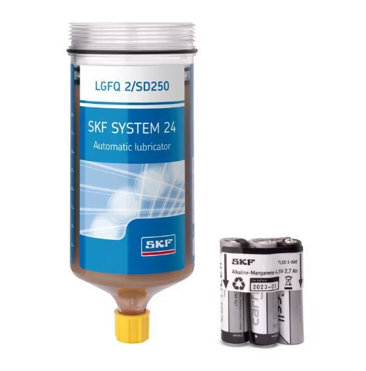 This set is filled with SKF LGFQ 2 high load and wide temperature food grade bearing grease, suitable for conveyors. Our refill sets for SKF SYSTEM 24 lubricators are filled with grease/oil and can be used with every TLSD lubricator. To use an oil refill set you need a support plate with integrated return valve which has to be ordered separately.