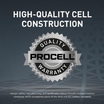 Design, safety, manufacturing, and qualification follow Procell’s stringent battery standards, which incorporate parts of the ANSI and IEC battery standards.
