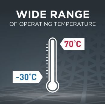 Operating temperatures from -30°C to 70°C