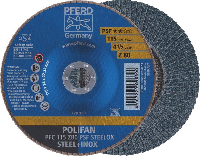 Pferd Polifan Flap Disc GP Zirconia - Steel/Inox 115mm 80 Grit