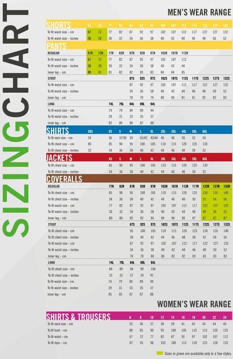 • Sizes Regular (77-117), Stout (87-132)