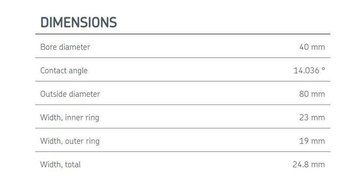 | Width, inner ring | 23 mm |