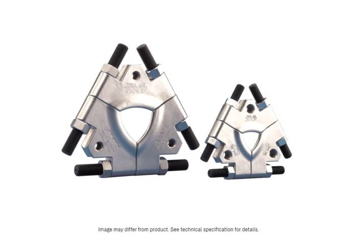 The tri-section pulling plate TMMS 160 is especially designed for use in combination with three-armed bearing pullers. The plate grips behind the inner ring of the bearing and prevents the pulling forces from being transmitted through the bearing, minimising the risk of bearing damage.