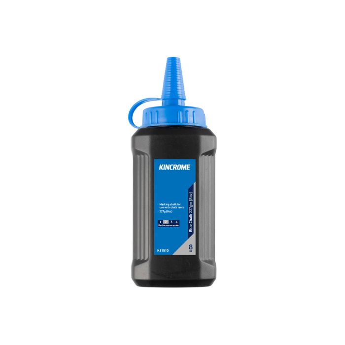 Chalk reel comes with a 4oz bottle of standard-strength, semi-permanent blue chalk.