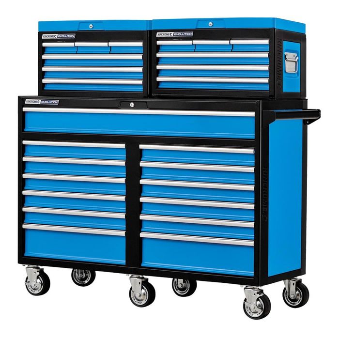 The EVOLUTION Range of Storage and Toolkits has been developed for the trade professional wanting value for money without compromising quality. EVOLUTION is loaded with premium features and trade tough tools for the professional user, but at a price not out of reach of the home user. Designed in Australia by Kincrome, the EVOLUTION range offers a storage or complete tool kit solution, for the serious home user, apprentice and trade professional.