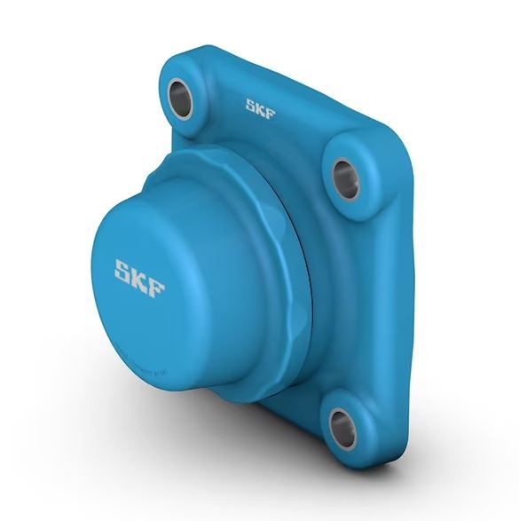 These square flanged ball bearing units are designed especially for the food and beverage industries. They are chemical resistant, lightweight and strong. The unit consists of an insert bearing, with a narrow inner ring and set screw locking, and is suitable for applications where the direction of rotation is constant or alternating. The bearing is mounted in a composite housing, which can be bolted to a machine wall or frame. Ball bearing units can accommodate moderate initial misalignment, but normally do not permit axial displacement.