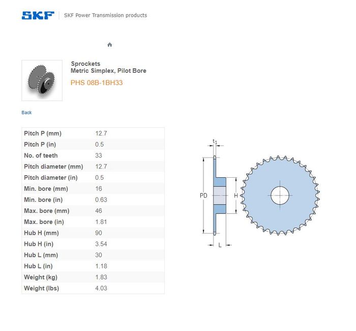 - SKF - 08B1/40/40H (1/2) SPROCKET 33 TEETH 1 ROW