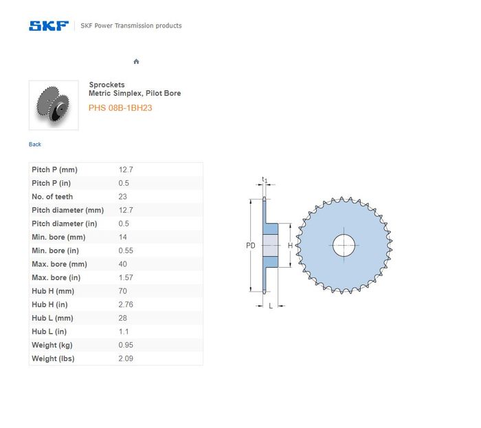 - SKF - 08B1/40/40H (1/2) SPROCKET 23 TEETH 1 ROW