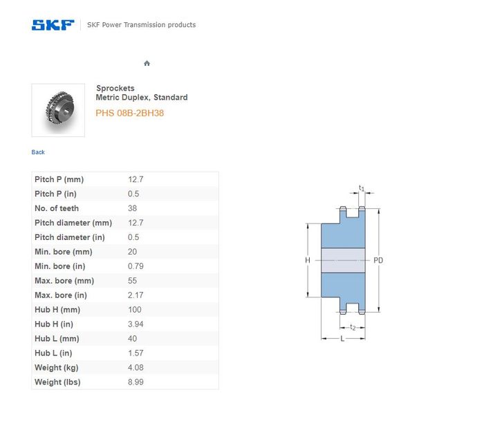 - SKF - 06B2 (3/8) SPROCKET 38 TEETH 2 ROW