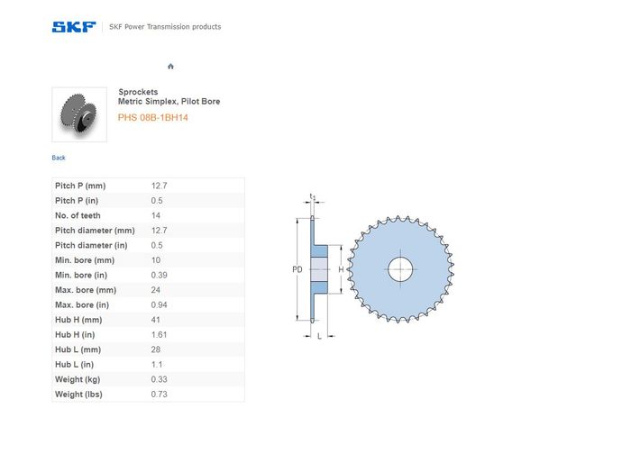 - SKF - 08B1/40/40H (1/2) SPROCKET 14 TEETH 1 ROW