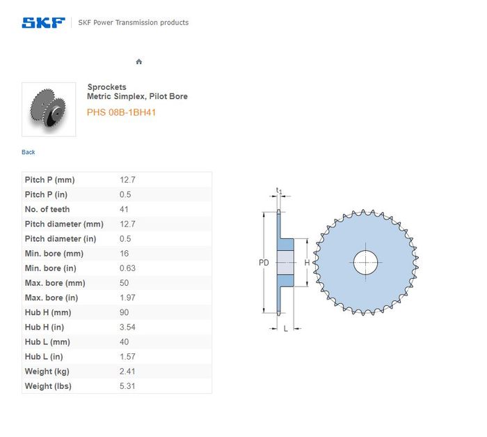 - SKF - 08B1/40/40H (1/2) SPROCKET 41 TEETH 1 ROW