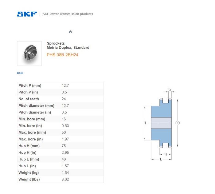 - SKF - 06B2 (3/8) SPROCKET 24 TEETH 2 ROW